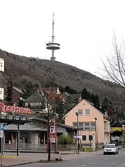 The Jakobsberg Telecommunication Tower (known locally as Langer Jakob or "Long James") was built on the site of the old Bismarck Tower from 1974 to 1978, also in concrete and steel. It is a 142 m high transmission tower (standard tower).
