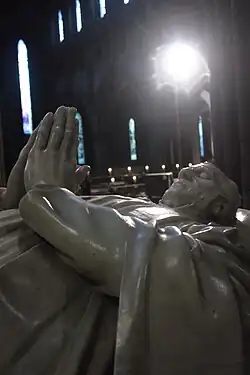 A fine recumbent effigy of Montgomery exists on the north side of the choir stalls, sculpted by James Pittendrigh Macgillivray five years after his death (1902).