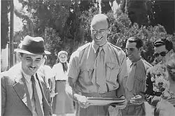 In April 1941, his father sent him on a secret, world-circling diplomatic mission to assure numerous governments that the United States would soon be in the war. The leaders contacted included Chiang Kai-shek in China, King Farouk in Egypt, and King George of Greece. During this trip, Roosevelt came under German air attack in both Crete and Iraq. In the African/Middle Eastern portions of the mission, he traveled with Britain's Lord Mountbatten as far as Bathurst in the Gambia. They reported on trans-African air ferry conditions, an important concern of FDR and Winston Churchill at the time.[12][13] In August, Roosevelt joined the staff of William J. Donovan, coordinator of information, with the job of working out the exchange of information with other agencies.[2]
