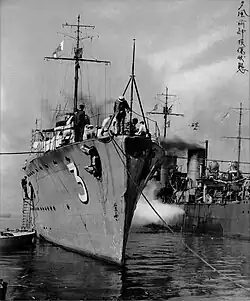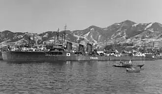 ![]() Yūkaze anchored at Kure with other Japanese destroyers after the surrender of Japan, October 1945 | |