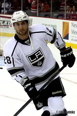 On June 29, 2008, Stoll was traded to the Los Angeles Kings (along with Matt Greene) in exchange for Ľubomír Višňovský.[8] On September 5, the Kings signed Stoll to a four-year contract worth $14.4 million. In 2008–09, Stoll scored 18 goals with 23 assists for 41 points. On April 22, 2012, he scored the series-winning goal in overtime to eliminate the Vancouver Canucks—the winners of the Presidents' Trophy—in Game 5 of the Western Conference Quarter-finals.[9]
