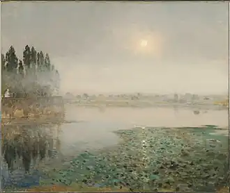 He was made an officer of the Legion of Honour in 1889. His charming and poetical treatment of landscape, and especially seascape, is the feature in his tonalism painting which in later years has given them an increasing value among connoisseurs.