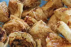 Other foods dating to the ancient Israelites include pastels, or Shabbat meat pies, and charoset, a sweet fruit and nut paste eaten at the Passover Seder.[26]