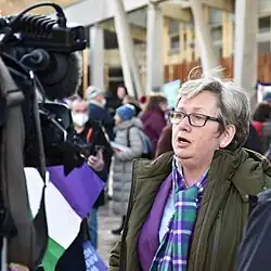 In January 2021, she supported an amendment to the (devolved) Hate Crime and Public Order (Scotland) Act 2021 that would have exempted "criticism of matters relating to transgender identity" from violating provisions relating to protected characteristics in the bill.[34] Later that month, she was criticised by SNP colleague Kirsty Blackman, after attacking and threatening to sue the party's LGBT wing, who had been critical of her defence of Sarah Phillimore, who had been banned from Twitter for allegedly making transphobic and antisemitic statements.[35][36]