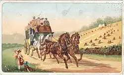 The Arbuckles entered into a coffee roasting business together in Pittsburgh.[2][4] In 1868, Arbuckle patented a formula for an egg-based glaze that coated coffee beans, protecting them from the air. In 1871, the brothers moved their business to New York City and formed the Arbuckle Brothers Company. He was the first merchant to sell packaged coffee.[3] He invented a machine with a machinist and draftsman to fill, weigh, seal, and label the bags in one continuous operation.[2] Arbuckle sold his packaged coffee under the Ariosa brand and was popular in the western frontier, gaining the motto: "The Coffee that won the West".[3][5] The brand had a sugar coating to add sweetness and an egg coating to allow the grounds to settle quickly.[2]