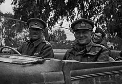 Three weeks after his promotion Campbell was killed when his jeep overturned on a newly laid clay road.[12] The driver of the jeep, Major Roy Farran, and the other passengers were thrown clear from the wreck and knocked unconscious. Farran had been Campbell's aide-de-camp, and later admitted considering suicide while waiting for medical help.[13] During the Western Desert campaign Campbell was considered one of the finest commanders in the Eighth Army, an old desert hand who had been in North Africa from the start of the war. His loss was deeply felt.[14] Alan Moorehead, a war correspondent who served throughout the war in the desert, described the impact that both Gott and Campbell had when visiting a hospital in Benghazi:'