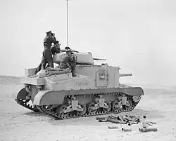Campbell and Auchinleck watch for fall of shot from atop a newly arrived Grant tank.