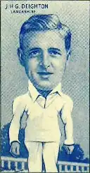 Deighton was educated at Denstone College, where he played for the First XI from 1937 to 1939, also appearing in the annual schools match at Lord's for The Rest against Lord's Schools in 1938 and 1939.[1] He appeared in 35 first-class matches as a right-handed batsman who bowled right-arm fast-medium pace. He scored 994 runs with a highest score of 79 and held 17 catches. He took 127 wickets with a best analysis of six for 50.[2] He played a few games of county cricket for Lancashire from 1948 to 1950, but most of his first-class cricket was for Combined Services, which he represented in 20 matches from 1947 to 1962.