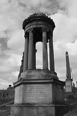 He is buried under a monument on the top of the Glasgow Necropolis.