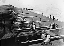 Vought SU-4 observation planes lined up for carrier take off.
