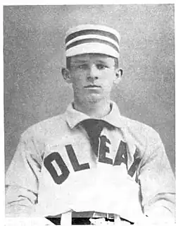 Early in the 1892 season, Von der Horst hired outfielder Ned Hanlon of the Pittsburgh Pirates to manage the Orioles.[19] The Orioles lost over 100 games, finishing last by a wide margin. Of the seventeen players Hanlon inherited, he kept only three: pitcher Sadie McMahon, catcher Wilbert Robinson and McGraw.[20] According to baseball author Burt Solomon, "Hanlon saw that McGraw's value to the Orioles came less from his agility than from his intensity. He never gave up and had contempt for anyone who did, John McGraw could drive his teammates to another level of play."[21] But little of that showed in the 1892 season, in which McGraw hit .267 with 14 stolen bases while playing a variety of positions.[22] During the 1892–93 offseason, McGraw attended Allegany College (soon to be renamed St. Bonaventure), trading his skills as a baseball coach for the right to attend without paying tuition.[23]