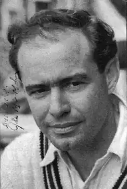 1. ^ At the time, it was believed he was 27: his birth date in Wisden Cricketers' Almanack and Playfair Cricket Annual is consistently shown as 1919 until the end of his career: e.g."Births and Deaths of Cricketers". Wisden Cricketers' Almanack (1958 ed.). Wisden. p. 932.