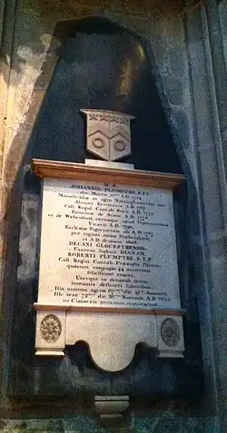 John Plumptre (11 March 1754 – 26 November 1825) was an English Anglican dean[1] and author.[2] He was educated at Eton[3] and King's College, Cambridge (elected Fellow, 1776). From 1778 until his death on 26 November 1825, he was Vicar of Stone, Worcestershire; to which he added, in 1790, the living at Wichenford; and, in 1808, the office of Dean of Gloucester.