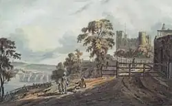 He was born in Cheshire about 1750, and practised in Manchester, London, and Preston as a landscape-painter in both oil and watercolour. Although he gained the name of the ‘Manchester Wilson’, his works in oil are opaque, flat, and ineffective. His works in watercolour, though in the light and washed style then practised, are well drawn and interesting.[1] The British Museum possesses three of his watercolour drawings, all of which are landscapes with figures, and there is a cleverly drawn landscape by him in grey faded tints at South Kensington. There is a landscape in oils in the Walker Art Gallery, Liverpool, by Rathbone, and two hang in the Peel Park Art Gallery, Salford. Between 1785 and 1806 Rathbone exhibited forty-eight landscapes at the Royal Academy and two at the Society of Artists. He also exhibited three landscapes at the exhibition of the Society of Artists in Liverpool in August 1774. Rathbone died in 1807.[1]