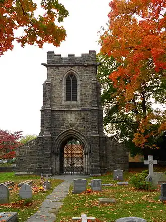 - Wanamaker Memorial Bell Tower and mausoleum (1908) at the Church of St. James the Less.