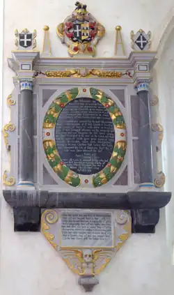 He died on 7 September 1687 at Salisbury aged 49 and was buried in St Mary's Church, Brixham, on 20 September 1687, where his mural monument survives on the north wall of the nave inscribed as follows:
