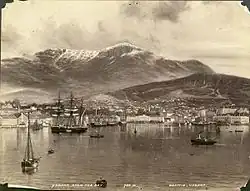 A history enthusiast, Beattie documented the crumbling ruins of the Port Arthur penal colony. In the 1890s Beattie set up a museum of art and artefacts in Elizabeth Street Hobart, relocated in 1921 to his photographic studio in Murray Street, which attracted visitors paying "a shilling a time".[8] Appointed Photographer to the Government of Tasmania on 21 December 1896 he prepared composite pictures of the Governors of Tasmania 1804–1895, as well as Parliamentarians of Tasmania 1856–1895. In his government role he promoted tourism, Tasmania’s wealth of minerals and unique flora and fauna, and produced and distributed lantern slide shows on various subjects; A trip through Tasmania, From Kelly's Basin to Gormanston, as well as Port Arthur and Tasman Peninsula.[24] The photographs appeared in the 1900 Cyclopedia of Tasmania,[25] and posthumously in Walkabout,[26] and his images of places such as Port Arthur and the Isle of the Dead were used as postcards into the early twentieth century.[27][28] He presented at Andrew Inglis Clark’s the Minerva Club, and with Bishop Henry Montgomery and Professor William Brown founded an Historical Section, with Beattie as its vice-president,[29] of the Royal Society of Tasmania in 1899. The Society made Beattie a fellow in 1890, and for it he conducted a series of lectures during the Tasmanian centenary celebrations of 1904 (later published as Glimpses of the Lives and Times of the Early Tasmanian Governors).[30] His suggestion that a "series of pictorial stamps featuring scenic Tasmanian landscapes should be issued to promote the State", was taken up and eight Tasmanian pictorial stamps were printed in 1899, with five featuring photographs by Beattie, the remainder being reproductions of paintings by Haughton Forrest; they were issued until 1912.[16]