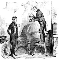 John Wemmick is a fictional character in Charles Dickens's 1861 novel Great Expectations. He is Mr Jaggers's clerk and the protagonist Pip's friend.[1] Some scholars consider him to be the "most modern man in the book".[2][3] Additionally, Wemmick is noted as one of Dickens's "most successful" split characters, insofar as Wemmick's character represents an exploration of the "relationship between public and private spheres in a divided existence".[4]