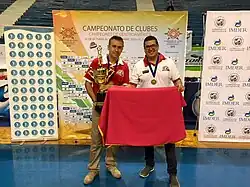 ![]() Dámaso holding the FIBA COCABA Championship trophy circa 2015. | |