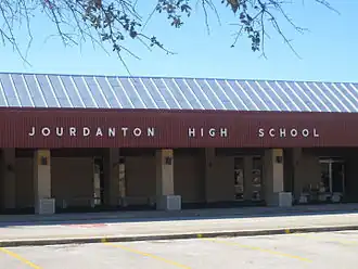 Jourdanton High School is a public high school located in Jourdanton, Texas, United States, and is classified as a 3A school by the University Interscholastic League. It is part of the Jourdanton Independent School District located in central Atascosa County. During 2022–2023, Jourdanton High School had an enrollment of 442 students and a student to teacher ratio of 11.06.[1] The school received an overall rating of "B" from the Texas Education Agency for the 2021–2022 school year.[2]