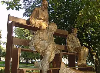 Juan Muñoz (17 June 1953[1] – 28 August 2001) was a Spanish sculptor, working primarily in paper maché, resin and bronze. He was also interested in the auditory arts and created compositions for the radio. He was a self-described "storyteller".[2] In 2000, Muñoz was awarded Spain's major Premio Nacional de Bellas Artes in recognition of his work; he died shortly after, in 2001.