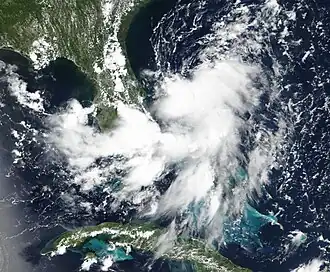 On July 13, a broad area of low pressure formed off the Atlantic coast of northern Florida.[1] The NHC designated the system Invest 93L on July 14.[2] On July 15, the disturbance began showing some signs of a developing circulation.[3] Later that day, it moved onshore over Northeast Florida,[4][5] then across Central Florida.[6] The next day, the system moved generally westward across the Florida Panhandle,[7] and then over Louisiana.[8]