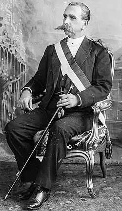 Following the Civil War, Borgoño was elected to represent his native province of Trujillo in Congress.[6] His term began in 1886 and lasted until 1889. He was once again appointed Minister of War and Navy as soon as Cáceres took office as president on 4 June 1886;[11] he held this position until the following year.[1] In 1890, after holding multiple political offices, he was selected to be the Second Vice President of Peru, underneath the President, Remigio Morales Bermúdez, and the First Vice President, Pedro Alejandrino del Solar.[3] Morales Bermúdez, like Borgoño, was loyal to Cáceres,[12] who had personally selected Morales Bermúdez to serve as president.[13] del Solar, on the other hand, was part of Cáceres' opposition and an ally of Nicolás de Piérola.[12][14]