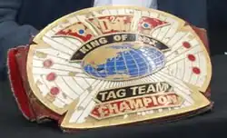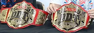 The KO-D (King of DDT) Tag Team Championship (Japanese: KO-Dタッグ王座, Hepburn: KO-D Taggu Ōza) is a professional wrestling tag team championship owned by the Japanese promotion DDT Pro-Wrestling (DDT). The title was established in 2001.[2] The current champions are The Apex (Yuki Iino and Yukio Naya).
