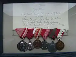 - the Wound Medal for being wounded once (on 20 September 1918 at Zigolon – Adamello-Presanella)