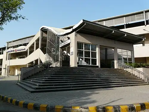 The Kalkaji Mandir metro station is an interchange station between the Violet Line and the Magenta Line of Delhi Metro.[2] It serves the area of Kalkaji in South-East Delhi, and provides access to many tourist sites such as Kalkaji Mandir, Lotus Temple, Prachin Bhairav Mandir and ISKCON Temple.[3] The station was opened along with the first section of the Violet Line from Central Secretariat - Sarita Vihar on 3 October 2010, in time for the Commonwealth Games opening ceremony on the same day.[4] Its interchange with the Magenta Line was opened on 25 December 2017.[5]