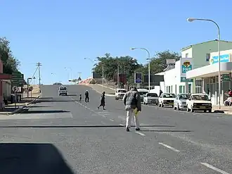 Karasburg (Khoekhoe: ǀNomsoros, old name Afrikaans: Kalkfontein, literally "carst spring"[3]) is a town[4] in the ǁKaras Region of southern Namibia and the district capital of the Karasburg electoral constituency. It lies at the heart of the southern Namibian sheep farming industry. Karasburg had a population of 6,621 people in 2023.