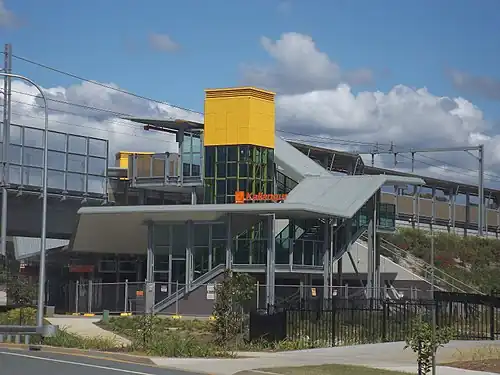 Kallangur railway station is located on the Redcliffe Peninsula railway line in Queensland, Australia. It serves the suburb of Kallangur in the City of Moreton Bay opening on 4 October 2016.[1][2] It is located between Goodfellows and Dohles Rocks Roads.[3][4] The station is expected to generate a business centre in the immediate surrounding area.[5]
