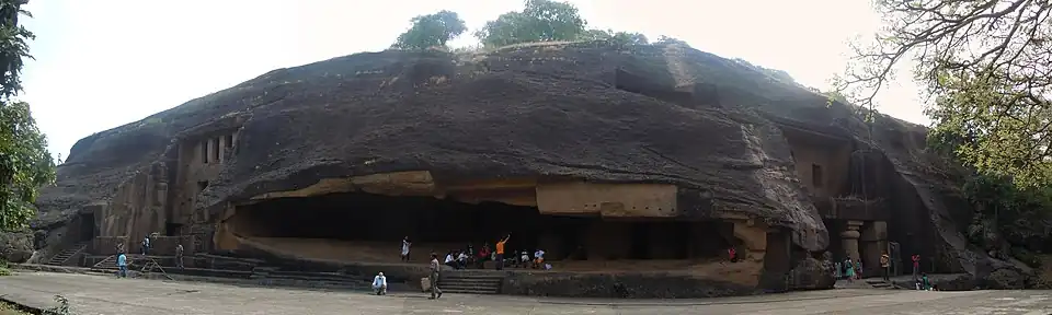 The Kanheri Caves (Kānherī-guhā [kaːnʱeɾiː ɡuɦaː]) are a group of caves and rock-cut monuments cut into a massive basalt outcrop in the forests of the Sanjay Gandhi National Park, on the island of Salsette in the western outskirts of Mumbai, India. They contain Buddhist sculptures and relief carvings, paintings and inscriptions, dating from the 1st century CE[1] to the 10th century CE. Kanheri comes from the Sanskrit Krishnagiri, which means "black mountain".[2]