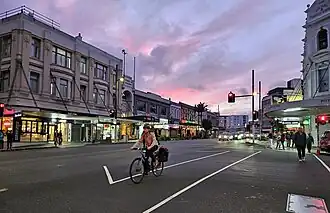 From about 1900 to the early 1960s, K' Road was Auckland's busiest shopping street with a large range of clothing and shoe shops and several department stores. Most retail chain stores had branches here, often in preference to Queen Street. During the interwar period most of Auckland's main shops selling furniture, musical instruments, radios and household appliances were located here.[6][7]