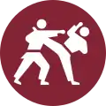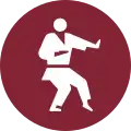![]() ![]() Pictograms for kata (left) and kumite (right) | |