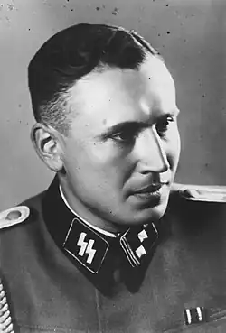 Karl-Friedrich Höcker (11 December 1911 – 30 January 2000) was a Nazi war criminal, German commander in the SS and the adjutant to Richard Baer, who was a commandant of Auschwitz I concentration camp from May 1944 to December 1944. In 2006, a photo album created by Höcker (the Höcker Album), with some 116 pictures from his time at Auschwitz, was given to the United States Holocaust Memorial Museum, sparking new interest in his activities as a concentration camp administrator.