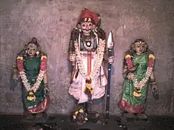 ![]() statue of Lord Kathavarayan and two his wife in Masi Periasamy Temple | |