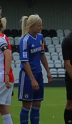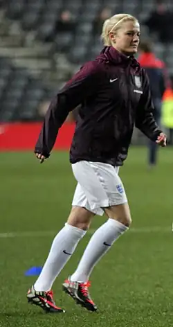 Katie Sarah Chapman (born 15 June 1982) is an English former professional footballer who notably played for FA WSL clubs Arsenal Ladies and Chelsea Ladies and was a member of the England women's national team. She primarily played as a central midfielder, although she was also deployed in central defence while playing for England. Chapman was described as "a physical player who handles a brunt of the dirty work in the middle of the pitch."[2][3] Her playing ability, profile and influence have drawn comparisons to former England captain David Beckham.[4]