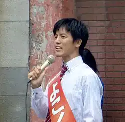 ![]() Katsuhito Yokokume campaigning in Shimbashi, Tokyo in 2016 | |