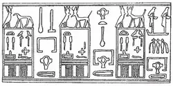 Fragment of a granite door built in the temple of Horus of Hierakonpolis by pharaoh Khasekhemwy and now in the Egyptian Museum