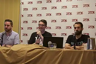 Kinda Funny founders (from left) Tim Gettys, Greg Miller, and Nick Scarpino at RTX in 2015
