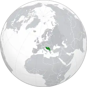 Location of Kingdom of Yugoslavia in 1930 (green) in Europe (dark grey)