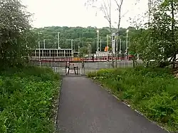 The original station opened on 1 July 1860 and closed on 31 July 1905. During 1905, the line between Leeds and Shipley was quadrupled, which involved slewing the line and building new bridges in several places.[1] It was not considered worthwhile rebuilding it when the line was diverted onto a new bridge over the canal.[2] A new station could provide opportunities for travel when space became available with the Kirkstall Forge Engineering closing in stages during the 1980s, 1990s and the early 2000s.[3][4]