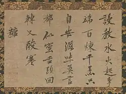 Kokan studied under the celebrated Chinese monk Yishan Yining. Their relationship can be regarded as the beginning of the golden age of the Literature of the Five Mountains in Japan. He studied calligraphy under an additional Chinese master Huang Shangu. Other works include Japan's first rhymed verse Jubun-in-ryaku in five volumes, Kokan Osho Juzenshiroku in three volumes, and the eighteen-volume Butsugo Shinron. A portrait of Kokan Shiren is in the Kaizoin of the Tōfuku-ji Temple in Kyoto, Japan.