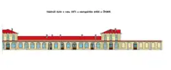 The first station in Kolín was built according to the design of chief engineer Anton Jüngling, who in 1844 submitted for approval a construction project with a budget of 40,526 florins. The Klein Brothers Entrepreneurship began with the construction in early 1845. Against the original budget, the Klein Brothers Entrepreneurship offered a discount of 2½ percent. Kolín station was not fully appreciated at its beginnings, although its location near the Elbe was indicative of the industrial boom of the city. The station was built near the Elbe on the embankment, which was protected by a stone pavement in case of flood ranged from 2 to 3 fathoms. It was a small railway station with leight of 200 fathoms with three tracks, classified as IV. category station with order number 21.