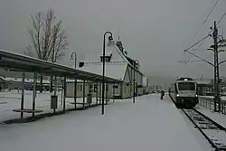 Kongsberg Station (Norwegian: Kongsberg stasjon) is a railway station located in downtown Kongsberg in Buskerud, Norway, on the Sørlandet Line. The station is served by express trains to Kristiansand and is the terminus of the L12 line from Oslo and Eidsvoll.[2]