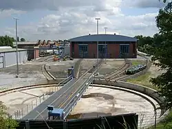 The first railway repair workshop was opened in Oppum as the Königliche Eisenbahn-Haupt-Reparaturwerkstatt Oppum, ("Royal Railway Main Repair Shop, Oppum").[7] Today, the Intercity-Express maintenance facility in Krefeld is a state-of-the-art facility for the maintenance of Deutsche Bahn rolling stock. A few thousand employees are employed there. ICE and electric multiple units used for regional transport are overhauled (all components of the vehicles are inspected, renewed or repaired) there. This includes servicing major items such as air conditioners, bogies and wheelsets, but also smaller parts such as shock absorbers. Several million Euros were invested in the modernisation of the plant in economic and environmental terms.