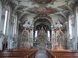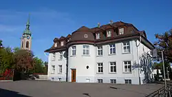 The name of the municipality stems from the Augustinian monastery Crucelin, later Kreuzlingen Abbey.[3] It was founded in 1125 by the Bishop of Constance Ulrich I. In the Swabian War and the 30 Years' War after the siege of Constance by Swedish troops, the Augustinian monastery was burned down by the people of Constance, who blamed the monks for having supported the enemy. In 1650, the monastery was rebuilt in its present location. With secularization in 1848, the buildings became a teachers' school. The chapel became a Catholic church.