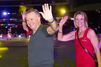 Keneally met her future husband, a member of the Australian Labor Party, Ben Keneally, at World Youth Day 1991 in Poland. She moved to Australia in 1994 to be with him, but they returned to the US, so Ben could take up a position with the Boston Consulting Group. They married there in 1996.[21][22] They returned to Australia two years later, after their elder son was born. She became a naturalised Australian in 2000, the same year she joined the Labor Party. She renounced U.S. citizenship in 2002, prior to standing for election.[23][24][25]