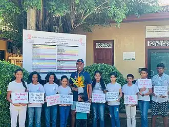 Seenigama's fortunes looked bleak when the tsunami struck the area, as several houses collapsed along with the destruction of several livelihoods. The tsunami hit the region devastatingly, as the area has been scarred by years of sea coral mining. Kushil Gunasekera stepped up for rescue efforts with the support of cricketers Muttiah Muralitharan and Kumar Sangakkara to bring back the normalcy to Seenigama area.[23][24][25] Kushil donated his newly built villa in Seenigama where he grew up to the Foundation of Goodness and turned it into a model campus with many empowerment sectors creating opportunities for these in need.[9] In 2022 the Foundation of Goodness was able to help 307,000 disadvantaged people from 975 villages islandwide and 15,000 rural kids, youth and women study at the 18 empowerment centres located in 12 districts free of cost including life skills, good values and many trending subjects that are not in the school curriculum.[26]